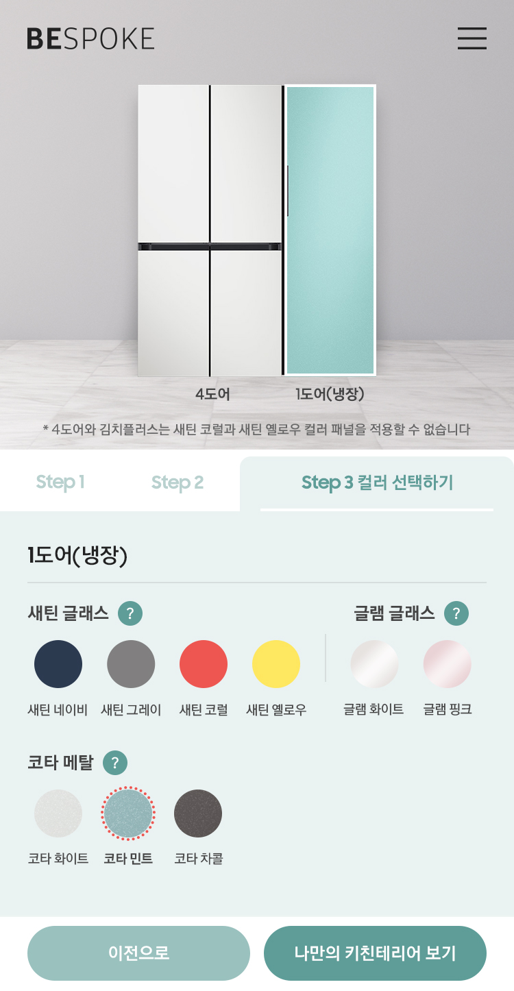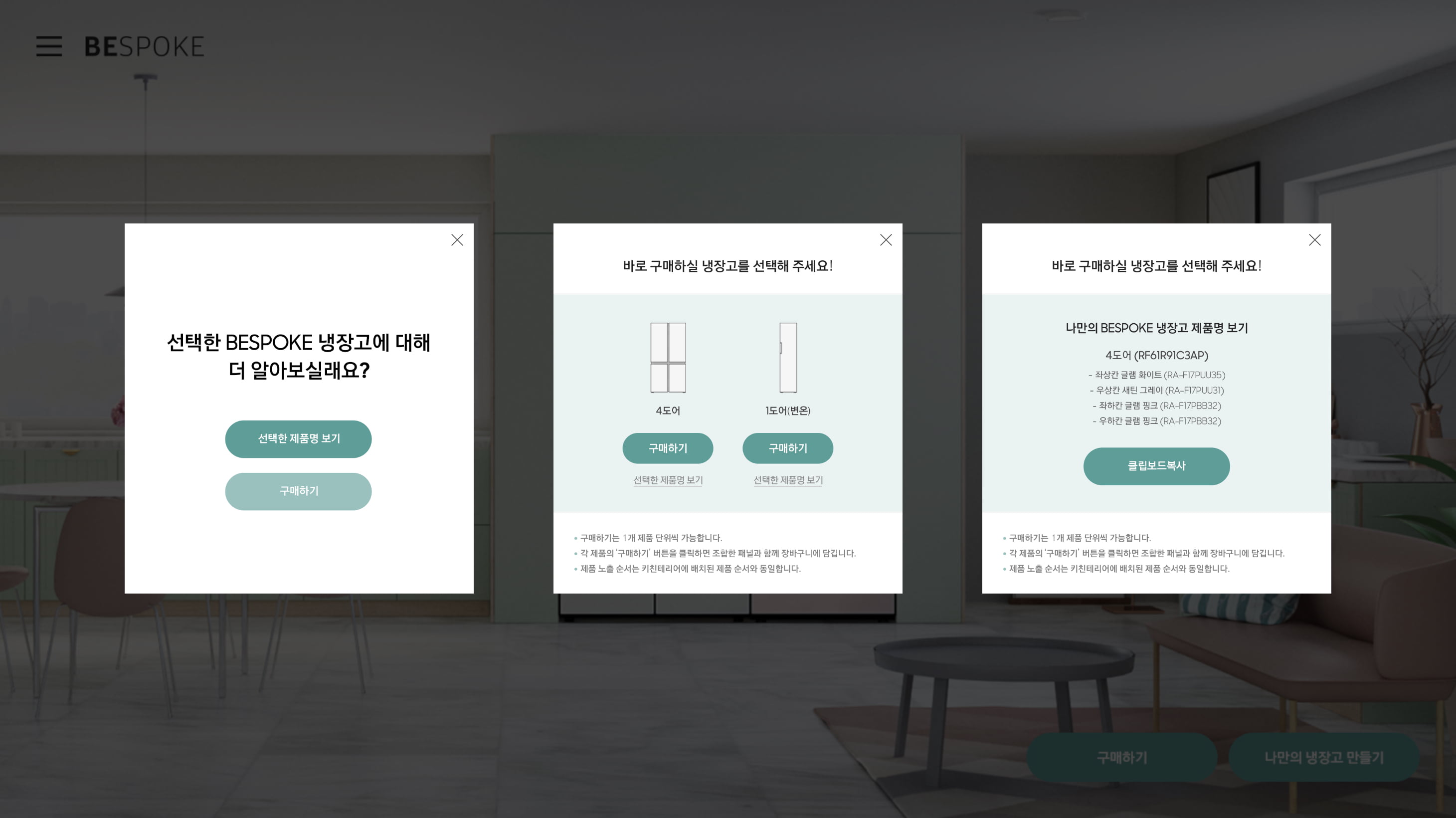 제품 공식 출시 전 비스포크 냉장고를 온라인상에서 마음대로 조합하고 컬러도 변경해 가상의 인테리어에 배치해 확인해 볼 수 있는 온라인 체험존을 제작하게 되었습니다.