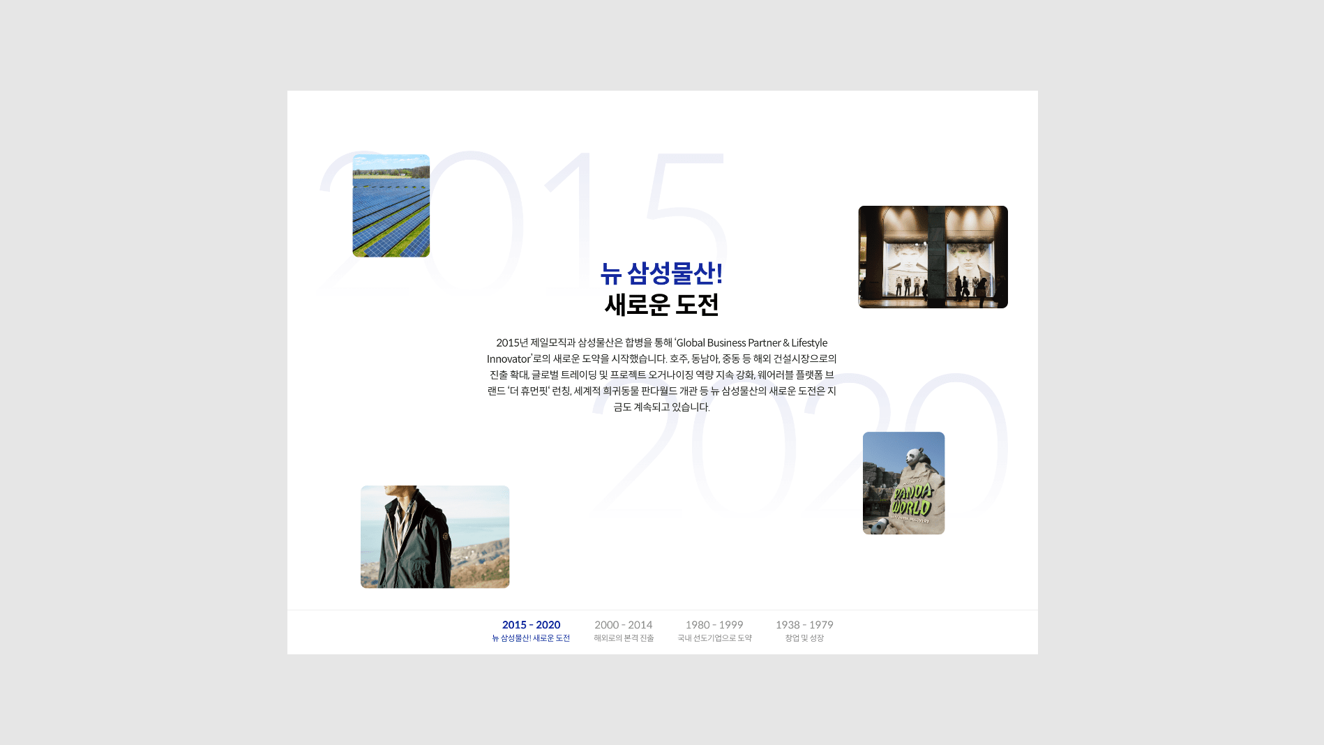 삼성물산이 걸어온 그리고 나아가고자 하는 방향을 직관적으로 전달할 수 있도록 구성하였습니다.